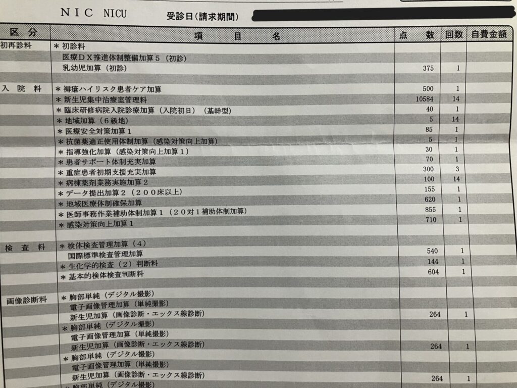 NICU/GCU、入院費は月約20万円だけど支払うのは毎月37,528円!